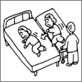 Moving from one lying position to another on the same or a different level, such as moving from one bed to another.