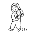 Taking or transporting an object from one place to another using the arms and hands, such as when carrying a child |