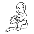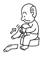 | Carrying out the coordinated tasks of putting clothes on various parts of the body, such as putting clothes on over the head, over the arms and shoulders, and on the lower and upper halves of the body; putting on gloves and headgear. |