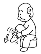 Carrying out the coordinated tasks of taking off socks, stockings and footwear. |