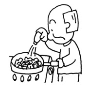 | Planning, organizing, cooking and serving simple and complex meals for oneself and others, such as by making a menu, selecting edible food and drink, getting together ingredients for preparing meals, cooking with heat and preparing cold foods and drinks, and serving the food. |