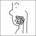 奥歯(例:大臼歯)で食物を押しつぶし、噛み砕き、すりつぶす機能。