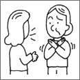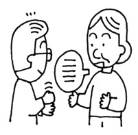 メッセージを伝えるために、ジェスチャー、シンボル、絵を用いること。例えば、賛成でないことを示すために頭を横に振ること。事実や複雑な概念を伝えるために絵や図を描くこと。 |