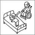 姿勢を変えずにベンチの上で横に移動する時や、ベッドから椅子への移動の時のように、ある面から他の面へと移動すること。