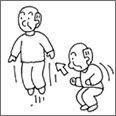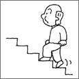 段、岩、梯子、階段、舗道の縁石などの床面やその他の物の上で、身体全体を上方あるいは下方へと移動させること。