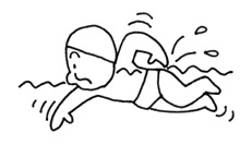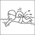 身体を水底につけない状態で、手足や全身の動きにより、水中を進めること。