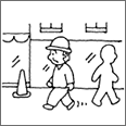 近隣、町、村、市街地の街路の歩行と移動。交通機関を利用しない、都市間あるいは更に長い距離の移動。 |