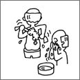 | 清浄や乾燥のための適切な用具や手段を用い、水を使って、全身や身体の一部を洗って拭き乾かすこと。例えば、入浴すること、シャワーを浴びること、手や足、顔、髪を洗うこと、タオルで拭き乾かすこと。 |