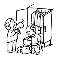 社会的状況と気候条件に合わせて、順序だった衣服と履き物の着脱を手際よく行うこと。例えば、シャツ、スカート、ブラウス、ズボン、下着、サリー、和服、タイツ、帽子、手袋、コート、靴、ブーツ、サンダル、スリッパなどの着脱と調節。 |