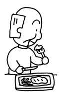 提供された食べ物を手際よく口に運び、文化的に許容される方法で食べること。例えば、食べ物を細かく切る、砕く、瓶や缶を開ける、はしやフォークなどを使う、食事をとる、会食をする、正餐をとること。 |
