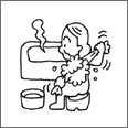 清浄や乾燥のための適切な用具や手段を用い、水を使って、全身や身体の一部を洗って拭き乾かすこと。例えば、入浴すること、シャワーを浴びること、手や足、顔、髪を洗うこと、タオルで拭き乾かすこと。