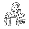 皮膚のきめと保湿状態の手入れ。例えば、たこや魚の目を取ること。保湿ローションや化粧品を使っての手入れ。