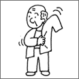 社会的状況と気候条件に合わせて、順序だった衣服と履き物の着脱を手際よく行うこと。例えば、シャツ、スカート、ブラウス、ズボン、下着、サリー、和服、タイツ、帽子、手袋、コート、靴、ブーツ、サンダル、スリッパなどの着脱と調節。