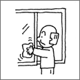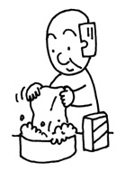 | 衣服や衣類を手で洗濯し、空中に掛けて乾かすこと。 |