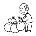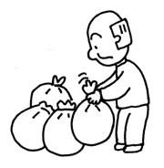 家庭のゴミを捨てること。例えば、家の周りのゴミやくずの集積、始末するゴミの準備、ゴミ処理機の使用、ゴミの焼却。 |