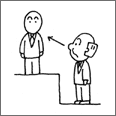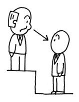 権限のある人、下位の立場にある人、同等の立場にある人との関係。
