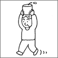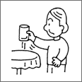 Using hands, arms or other parts of the body to place an object down on a surface or place, such as when lowering a container of water to the ground. |