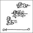 Moving the whole body from one place to another by means other than walking, such as climbing over a rock or running down a street, skipping, scampering, jumping, somersaulting or running around obstacles. |