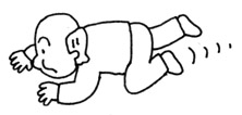 | Moving the whole body in a prone position from one place to another on hands, or hands and arms, and knees. |
