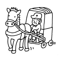 Driving a vehicle powered by an animal, such as a horse-drawn cart or carriage.