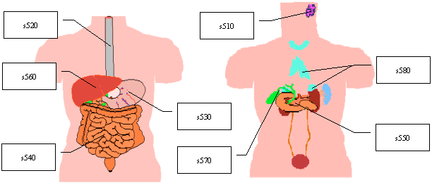 | s598 | Structures related to the digestive, metabolic and endocrine systems, other specified | s599 | Structures related to the digestive, metabolic and endocrine systems, unspecified |
