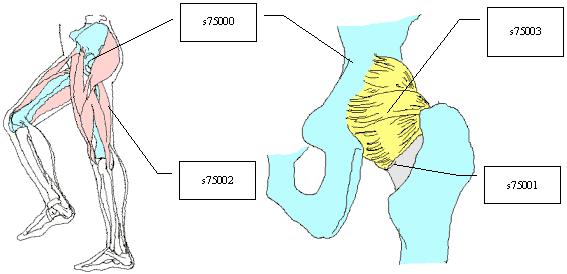 | bones of thigh | Hip joint | Muscles of thigh | Ligaments and fasciae of thigh | Structure of thigh, other specified | Structure of thigh, unspecified | ||