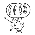 随意的眼球運動、追視運動、眼の固視などに関与する内眼筋、眼瞼、外眼筋の機能。その他、涙腺の機能、輻輳や瞳孔反射に関与する機能。機能障害の例としては、眼振、眼球乾燥症、眼瞼下垂。