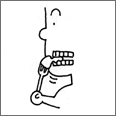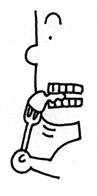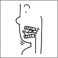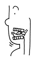 奥歯(例:大臼歯)で食物を押しつぶし、噛み砕き、すりつぶす機能。