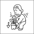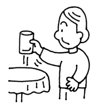 水の入った容器を地面に置くことのように、手や腕、その他の身体の部分を使って、物をあるものの上やある場所に置くこと。 |