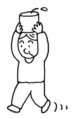 水の入った容器を頭の上にのせて運ぶことのように、頭部を使って、物をある場所から別の場所へと持っていく、あるいは移動させること。 |