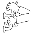 道具やドアの把手を握ることのように、片手または両手を用いて、物をつかんだり、持つこと。