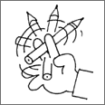 鉛筆をつまみ上げることのように、手と手指を用いて、小さな物を持ち上げたり、取り上げること。