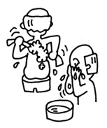 | 清浄や乾燥のための適切な用具や手段を用い、水を使って、全身や身体の一部を洗って拭き乾かすこと。例えば、入浴すること、シャワーを浴びること、手や足、顔、髪を洗うこと、タオルで拭き乾かすこと。 |