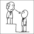 本人と比べ、社会的な地位や名声について、下位の立場にある人との公的な関係(被雇用者あるいは使用人との関係)をつくり保つこと。