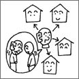 いとこ、おば、おじ、祖父母などの親族との親戚関係をつくり保つこと。 |