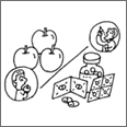 | 身体に取り入れるために採集されたり、加工されたり、製造されたりした、天然あるいは人工の物体や物質。 |