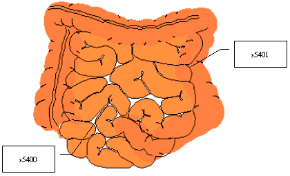 | Intestino delgado | Instestino grueso | Estructura del intestino, otra especificada | Estructura del instestino, no especificada | ||||