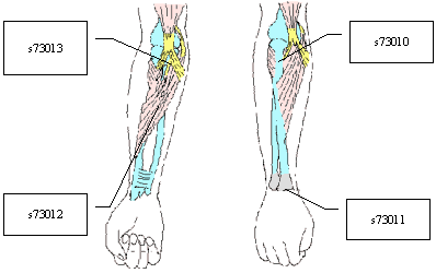 | Huesos del antebrazo | Articulación de la muñeca | Músculos del antebrazo | Ligamentos y fascias del antebrazo | Estructura del antebrazo, otra especificada | Estructura del antebrazo, no especificada | ||